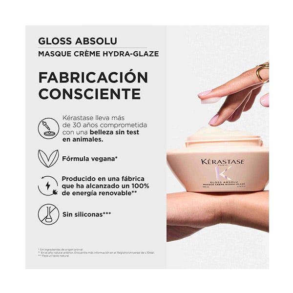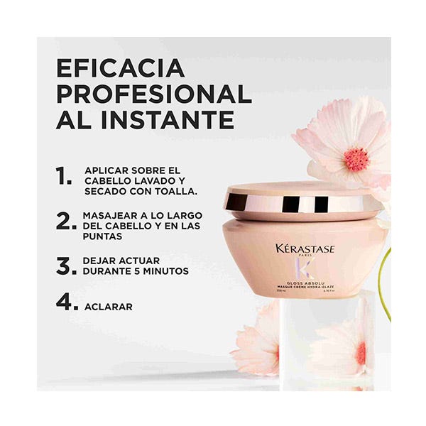 Para mejores resultados, combina Masque Crème Hydra-Glaze con otros productos de la gama Gloss Absolu, como Bain Crème Hydra-Glaze para unos resultados extra-glossy.