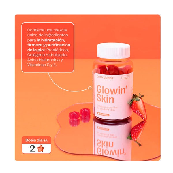 Con dos gummies diarias tendrás la cantidad recomendada de colágeno, ácido hialurónico, vitaminas y probióticos para una mejor versión de tu piel.