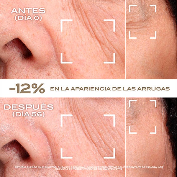 En 8 semanas, las manchas se atenúan, las arrugas se rellenan y la firmeza de la piel se restaura: la piel luce rejuvenecida, con una apariencia 5 años más joven.