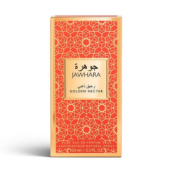 Deléitate con los hipnóticos y lujosos aromas de Oriente Medio con Golden Nectar, una sensual fragancia de la Colección Jawhara: una selección de cinco Eaux de Parfum que te transportan a Oriente Medio, un lugar donde la rica tradición se fusiona con la magnífica modernidad. Presentadas en elegantes frascos de cristal inspirados en la ornamentada arquitectura árabe, cada adictiva composición aromática es una celebración única de las diferentes facetas de la belleza sensorial árabe y su herencia olfativa.