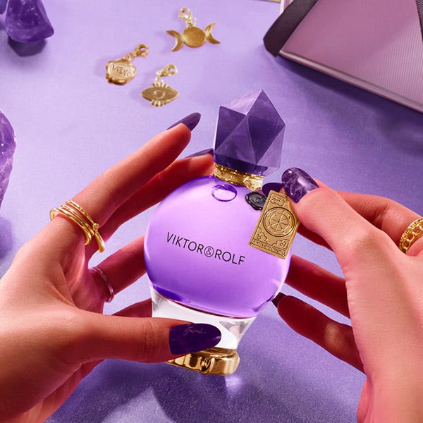 - EL FRASCO: Un frasco cautivador gracias a su jugo morado que levita sobre un precioso pedestal dorado. La poción misteriosa está sellada con un sello icónico de Viktor & Rolf. Contiene también una tapa de piedra tallada que evoca la poderosa piedra amatista, la cual te permite conectar con tu yo espiritual. Con un 15% de vidrio reciclado, este frasco está pensado para nuestros consumidores comprometidos con el medio ambiente, gracias a su función recargable (puedes desenroscar el tapón y rellenar la botella de nuevo).