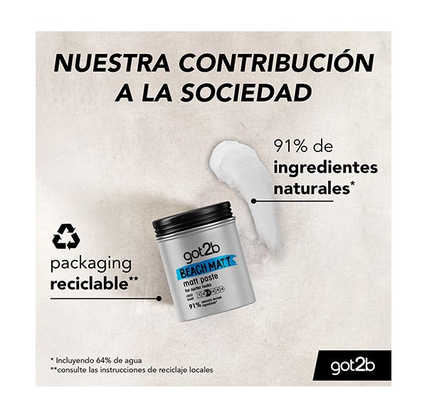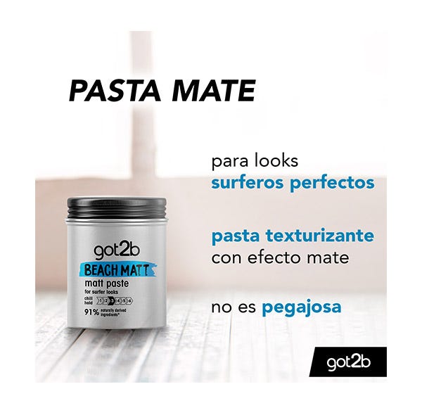 La Pasta Mate Look Surfero de got2b es una pasta texturizante con efecto mate y sujeción media, que te da un auténtico estilo surfista.