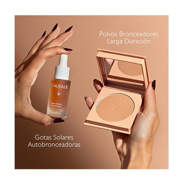 Las Gotas Solares Autobronceadoras se mezclan con tu crema facial Caudalie para que luzcas un bronceado progresivo, luminoso y a medida todo el año.