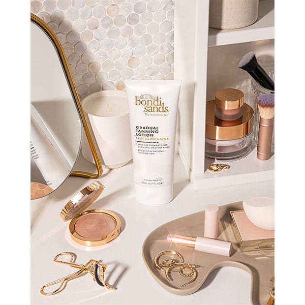 Arena, mar y sol, la envidiable imagen australiana. Disfruta de una piel radiante y luminosa todo el año con la loción bronceadora gradual Skin Illuminator de Bondi Sands. Esta crema hidratante corporal nutritiva, apta para todos los tonos de piel, contiene pigmentos brillantes para una luminosidad instantánea y se puede usar a diario para lograr un bronceado gradual.