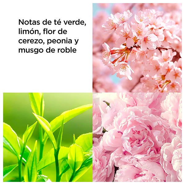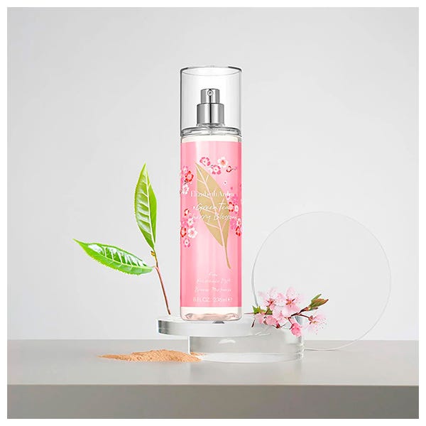 Elizabeth Arden Green Tea & Cherry Blossom Body Mist es una bruma corporal luminosa y delicada, creada para despertar los sentidos y envolver la piel en una sensación de frescura y bienestar. Inspirada en la efímera floración de los cerezos, esta fragancia femenina combina notas de almendra dulce, flor de cerezo y hojas de té verde, dando lugar a un aroma floral con matices verdes y dulces que revitaliza el cuerpo y eleva el ánimo.