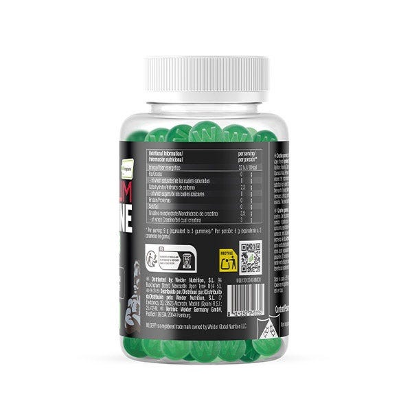 Gracias a su formato en gominola, este producto ofrece una alternativa divertida, cómoda y sabrosa para quienes buscan optimizar su rendimiento sin necesidad de polvos ni cápsulas, consiguiendo la creatina necesaria para mejorar el rendimiento físico.
