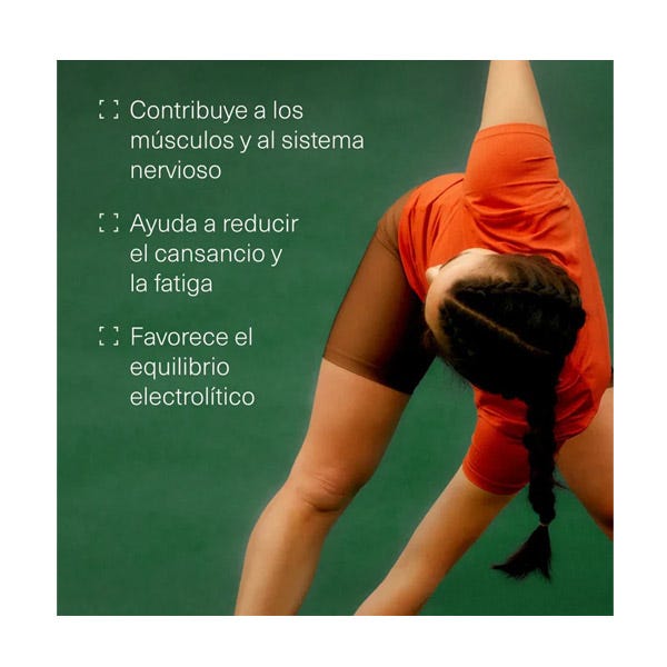 Contribuye al funcionamiento normal de los músculos y junto con la Vitamina B6 ayuda a aliviar las contracciones musculares o calambres.