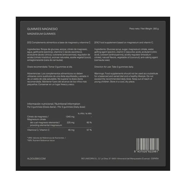 La formulación avanzada del Magnesio Aldous en formato gominola es una opción cómoda y sencilla de consumir magnesio. Contiene Magnesio y Vitamina C en un formato fácil de tomar con sabor a arándanos, aromas naturales y un bajo contenido en azúcar. No contiene gelatina ni excipientes.