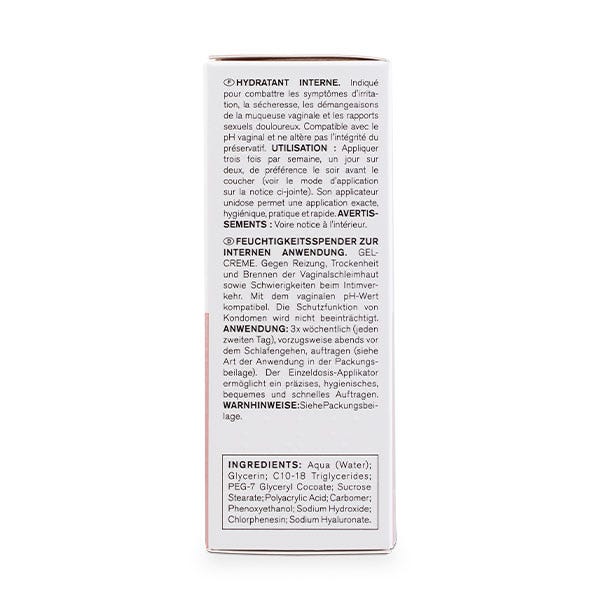 Gel-crema hidratante indicado para combatir los síntomas de irritación, sequedad y picor de la mucosa vaginal y la dificultad en las relaciones sexuales.