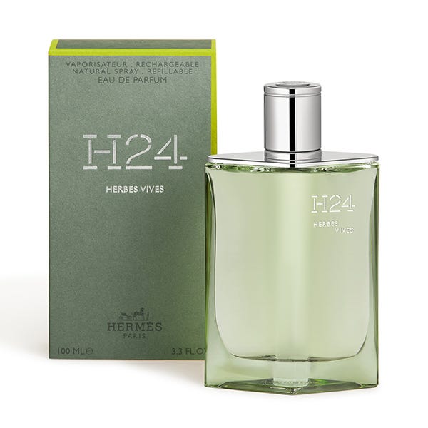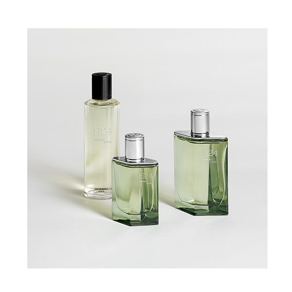 Con esta tercera entrega de la línea H24, la perfumista de Hermès Christine Nagel continúa su ejercicio botánico siguiendo los pasos de un hombre moderno en movimiento. H24 Herbes Vives eau de parfum recrea la sensación de redescubrir la naturaleza urbana después de la lluvia.