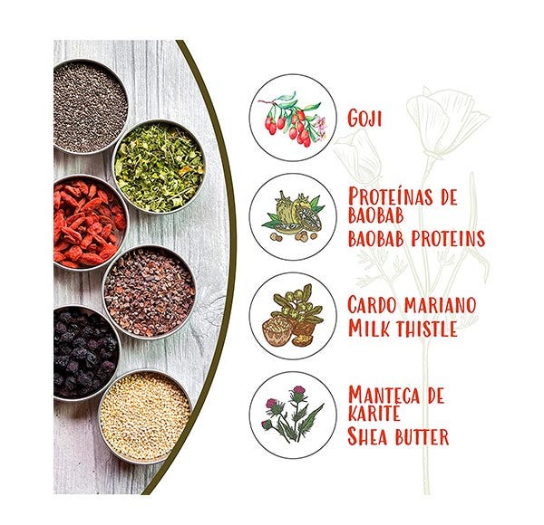 - Cardo Mariano: Alternativa natural a las siliconas, aporta brillo natural, sedosidad y sensorialidad.