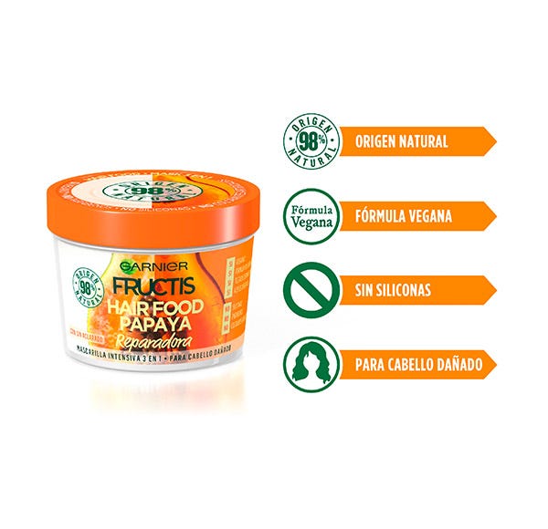 Descubre Hair Food Papaya: el poder ultra nutritivo de la superfruta Papaya para nutrir en profundidad el pelo dañado. Con aceites vegetales y extracto de papaya de Brasil, este Hair Food es ideal para tratar y reparar el pelo dañado. Un cuidado reparador intensivo para un cabello reparado hasta las puntas, más saludable.