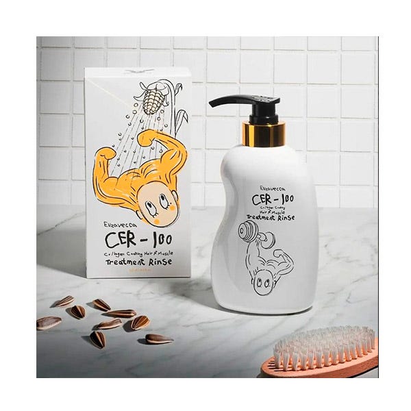 El CER-100 Collagen Coating Hair Muscle Treatment Rinse de Elizavecca es la solución definitiva para revitalizar, suavizar y fortalecer el cabello dañado. Este acondicionador intensivo combina ingredientes de alta calidad como colágeno, ceramidas y aceites esenciales para proporcionar una nutrición profunda que transforma tu cabello en cada aplicación.