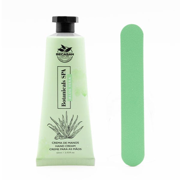 Contiene una crema de manos de Aloe Vera y una lima de uñas.