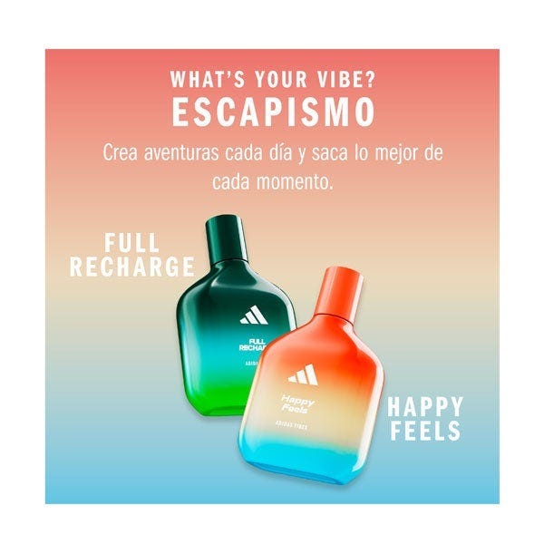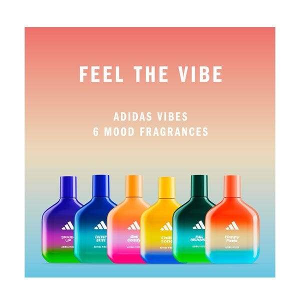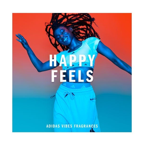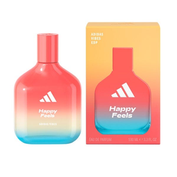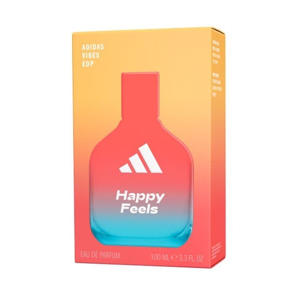 Está demostrado que el perfume Adidas Vibes Happy Feels transmite energía positiva*. Con notas chispeantes de pomelo y jazmín, para sentir la alegría del momento como en esos maravillosos días de verano.