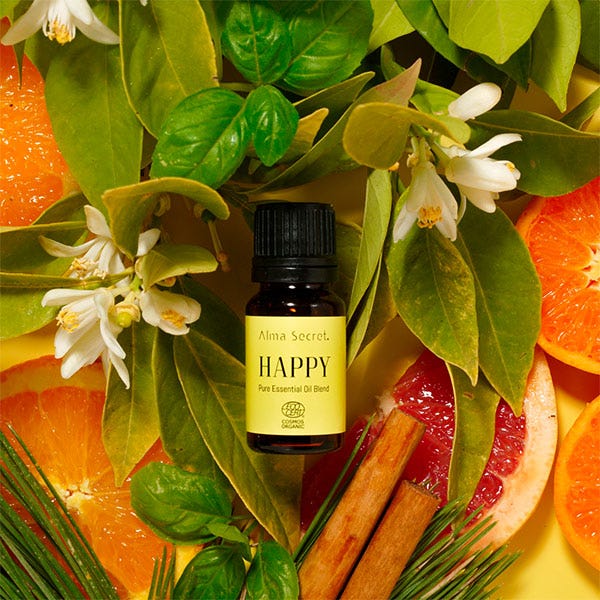 Una mezcla compleja de aceites esenciales puros capaz de renovar el estado de ánimo para potenciar el positivismo, la alegría y la felicidad.
