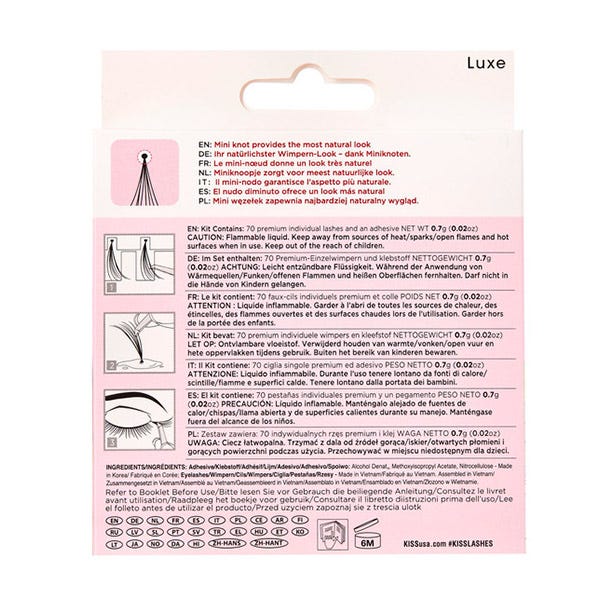 Contiene 70 grupos de pestañas individuales de longitudes cortas, medias y largas.