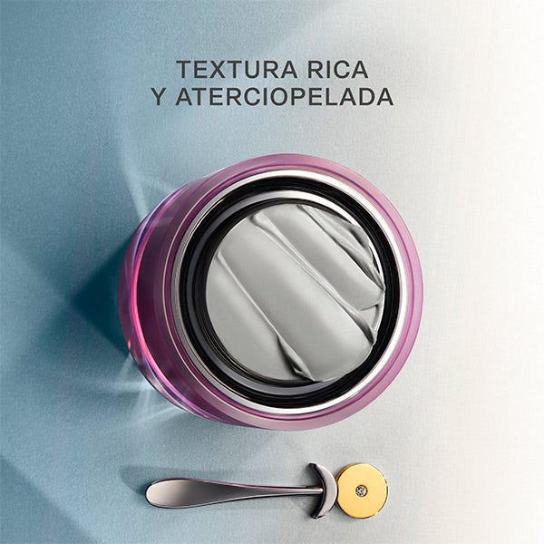 • Con platino, esta crema facial devuelve el volumen, la densidad y la firmeza, reduce las líneas de expresión y arrugas y mejora la textura de la piel