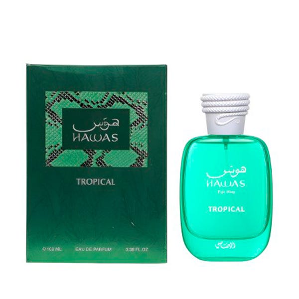 Rasasi presenta su refrescante y seductora novedad de la colección Hawas Tropical, diseñada para hombres que anhelan aventura y exotismo. Este perfume magistralmente creado trae la frescura de tierras tropicales directamente a ti. Con sus notas amaderadas, te transporta instantáneamente a una playa soleada rodeada de exuberante vegetación.