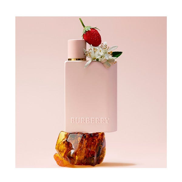 Burberry Her Parfum se abre con delicadas notas de cereza. Esta fragancia gourmand, afrutada y a la vez profunda, evoluciona a través de un cálido ámbar hasta una elegante y envolvente vainilla: compleja y llena de contrastes.