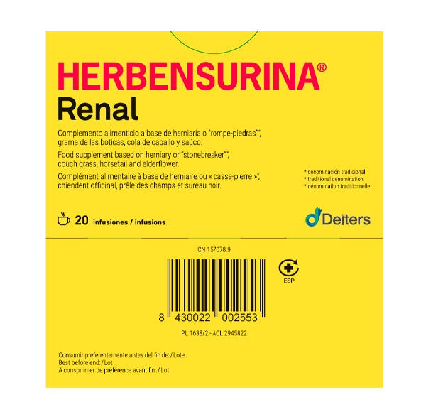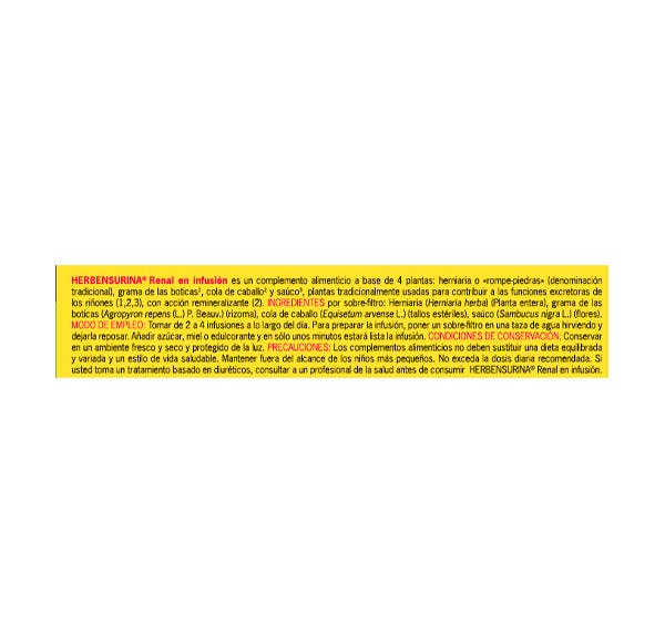 Herniaria (Herniaria herba) (Planta entera) gama de las boticas (Agropyron repens (L) P. Beauv. (rizoma) cola de caballo (Equisetum arvense L.)(tallos estériles) saúco (Sambucus nigra L.) (flores)