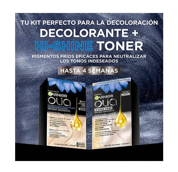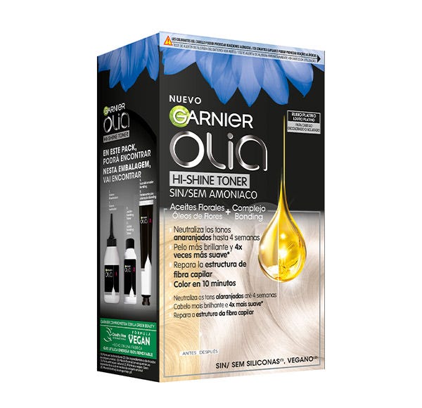 ¡Descubre Olia Hi-Shine Toner, tu aliado perfecto para neutralizar los tonos indeseados en cabellos con mechas o aclarados, en tan solo 10 minutos! Su loción equilibrante neutraliza instantáneamente los tonos anaranjados y amarillentos gracias a sus pigmentos fríos, dejando un rubio radiante con 2x veces más brillo*.