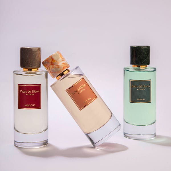 Una colección de perfumes inspirados en la naturaleza y en la elegancia de la marca Pedro del Hierro. El femenino diseño de un clásico frasco cilíndrico combinado con el toque artesanal de un sofisticado tapón de piedra natural refleja su alta calidad. Los detalles en oro dan el toque final de delicadeza y estilo.