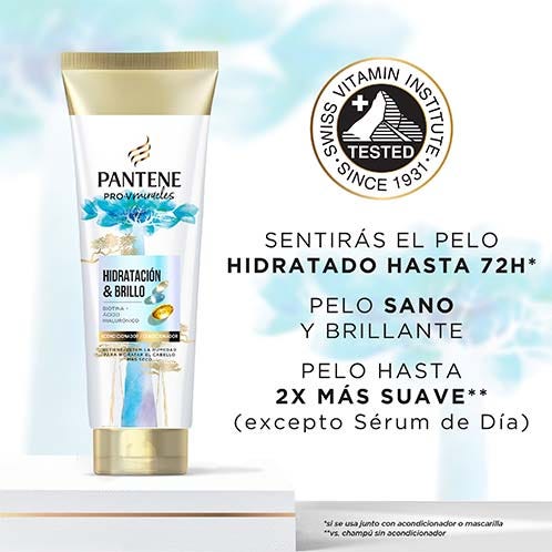 ¿Tienes el pelo seco y dañado que necesita urgentemente hidratación? El acondicionador Hidratación Y Brillo de Pantene es un hidratante capilar incomparable. Enriquecido con nutrientes Pro-V, nuestra fórmula única aporta hidratación profunda al pelo seco y apagado. Te proporcionará una suavidad y un brillo irresistibles. Apto para uso diario, el acondicionador Hidratación Y Brillo está enriquecido con ácido hialurónico y biotina para proporcionar un pelo nutrido y sano, lleno de vida y movimiento. Consigue un pelo deslumbrante con hasta 72 horas de brillo. Siéntete tu mejor versión con este práctico producto.