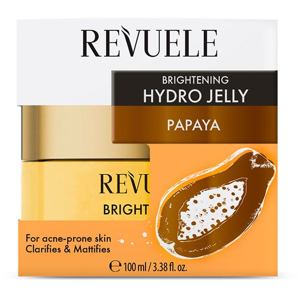 REVUELE BRIGHTENING HYDRO JELLY PAPAYA es una crema hidratante diaria, adecuada para pieles con tendencia acnéica.