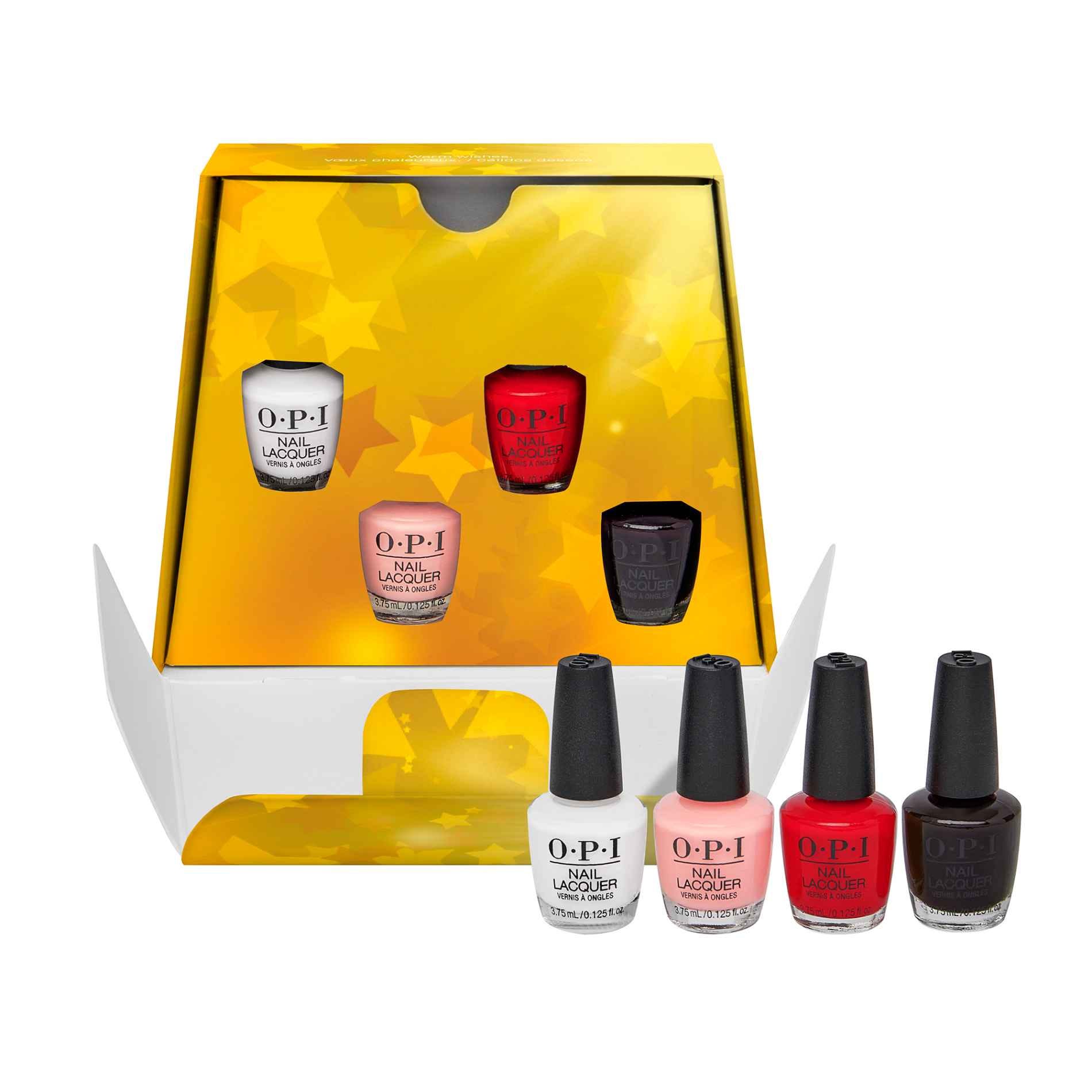 Un set de regalo mini mani de 4 piezas con algunos de los tonos más vendidos de OPI.
