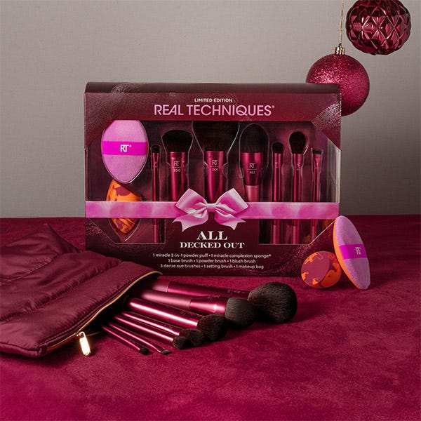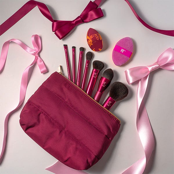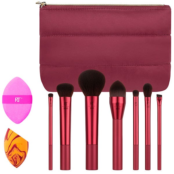 ¡Este set de regalo de 10 piezas es para los amantes de las brochas y esponjas! Todo lo que necesitas para un brillo luminoso, además de una bolsa para guardarlo todo.