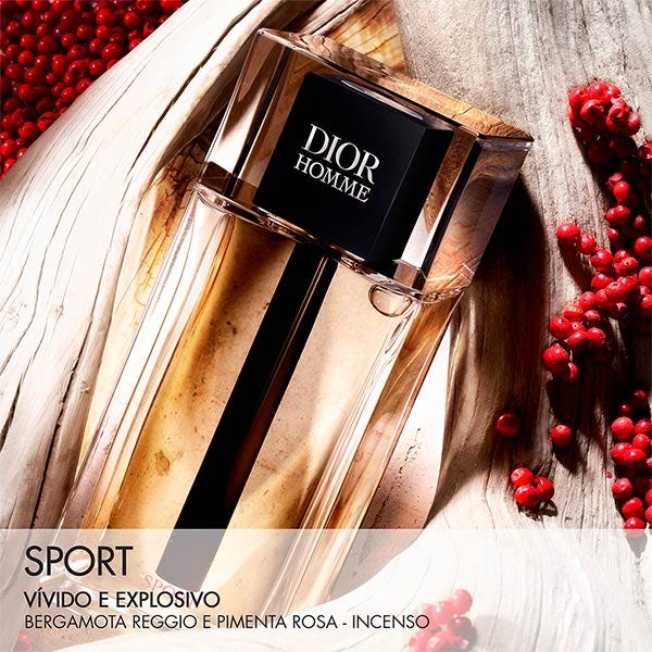 La bergamota de Reggio y el limón son un auténtico llamamiento a la frescura. Sus notas jugosas y cítricas potencian inmediatamente la estela firme de la nueva Dior Homme Sport. A estas notas de salida se añaden el resinoso y alimonado elemi. Chispeantes y picantes, las bayas rosas acompañan las notas cálidas y ambarinas del perfume.