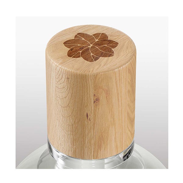Le acompaña un packaging cilíndrico que se ha realizado con el estampado a partir de un grabado del artista Enrique Valero y está pensado para poder ser utilizado en más ocasiones (jarrón para flores secas, lapicero...).
