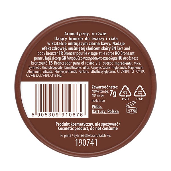 Un bronceador iluminador aromático para el rostro y el cuerpo, para darle a la piel necesita un brillo adicional. Nuestro bronceador no solo proporciona un efecto de piel sana y bronceada, sino que también envuelve con un suave aroma a café. El tono del bronceador se adapta perfectamente a diferentes tipos de piel, resaltando suavemente la belleza natural. Su fórmula ligera y fácil de aplicar, junto con sus finas partículas doradas, hacen que la piel luzca fresca y radiante. Ideal tanto para el rostro como para el cuerpo, nuestro bronceador añade un brillo saludable a la piel y te hace sentir segura y hermosa, como después de una taza de tu café favorito en una fresca mañana de otoño.