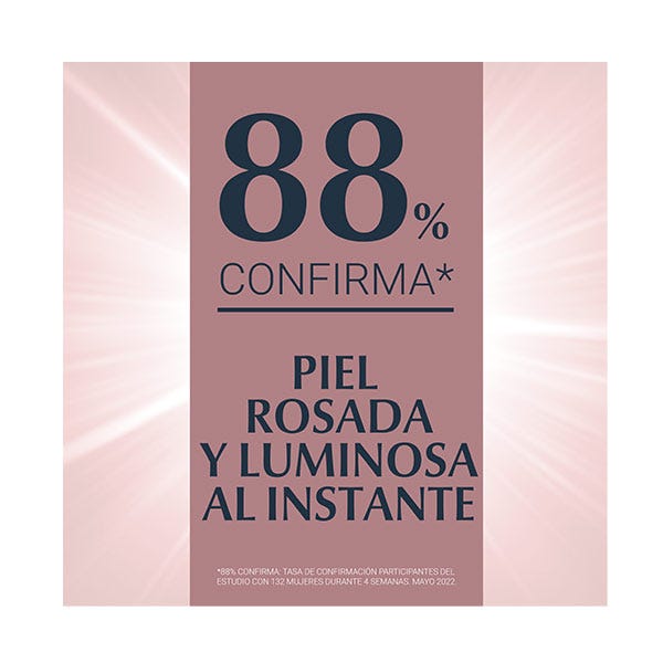La fórmula aporta un tono rosado para contrarrestar el aspecto pálido y cansado de la piel, especialmente por la mañana.