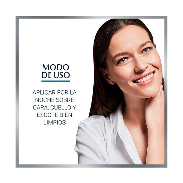 Esta crema antiedad de cuidado facial favorece la regeneración de la piel durante la noche y ha demostrado una alta eficacia y tolerabilidad cutánea en estudios clínicos y dermatológicos.