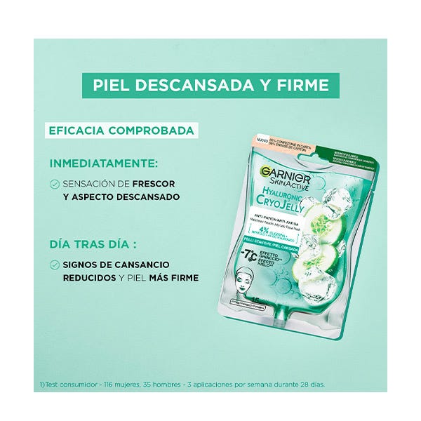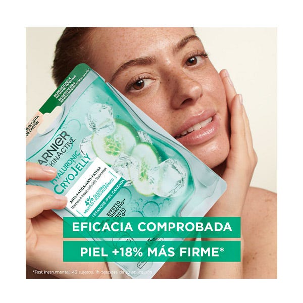 Garnier Tissue Mask Hyaluronic Cryo Jelly Antifatiga para pieles cansadas.