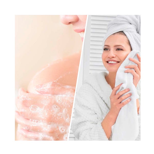 Por la mañana y por la noche, masajee suavemente una pequeña cantidad sobre el cuerpo, el rostro y el cuello humedecidos y enjuague con agua tibia. Siga con el resto de su rutina de cuidado de la piel.