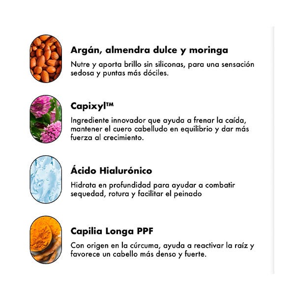 Limpia con suavidad mientras hidrata en profundidad, reduce el encrespamiento y deja un brillo de salón.