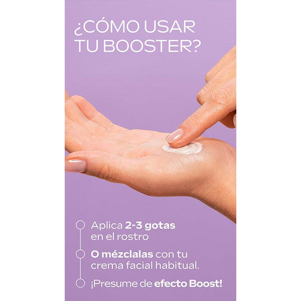 Aplicar 2-3 gotas directamente sobre el rostro o mezclar con tu crema facial.