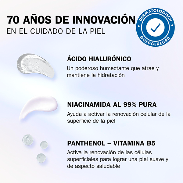 Esta fórmula proporciona una hidratación supercargada que dura todo el día con ácido hialurónico, niacinamida y péptidos.