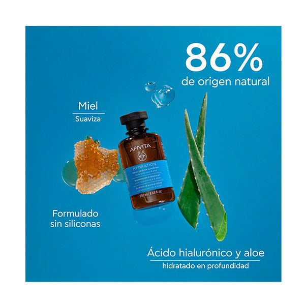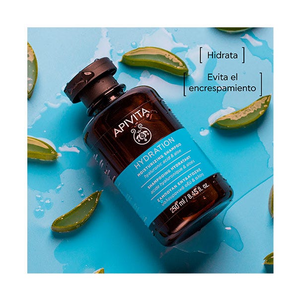 • Ofrece una hidratación intensa y restaura los niveles de hidratación en el interior de la fibra capilar, con ácido hialurónico, extracto de aloe, miel de tomillo y proteínas de avena.