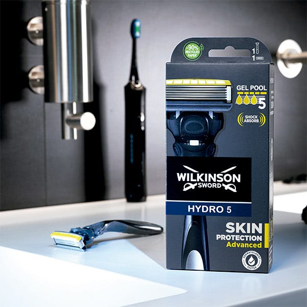 Wilkinson Sword Hydro 5 Advanced Razor máquina de afeitar para hombre que incorpora una innovadora tecnología shock absorb que se autoajusta para proporcionar el nivel óptimo de presión. Todas las máquinas y recambios Hydro son compatibles entre si.