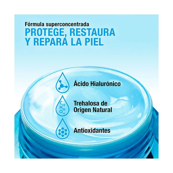 La mezcla de potentes antioxidantes, con Vitamina E, protege la barrera de hidratación frente a agresiones externas.