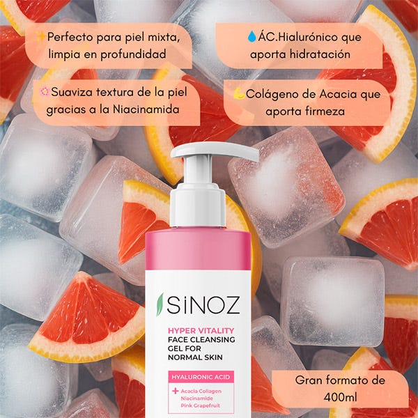 El Gel Limpiador Facial Sinoz para piel normal ofrece una limpieza profunda que elimina impurezas, grasa y restos de maquillaje, mientras hidrata, suaviza y protege la piel. Su fórmula está enriquecida con ingredientes activos que ayudan a mantener el equilibrio cutáneo diario.