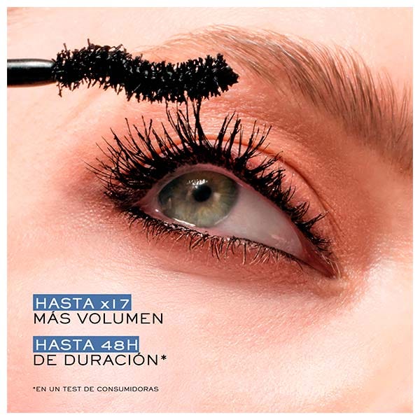 VOLUMEN EXTREMO INSTANTÁNEO: Aporta hasta 17 veces más volumen en cada aplicación*, logrando pestañas más densas y definidas desde la raíz hasta la punta.