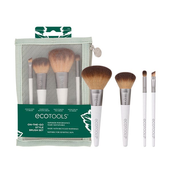 Incluye 4 brochas imprescindibles en tamaño mini y un estuche para transportarlas.