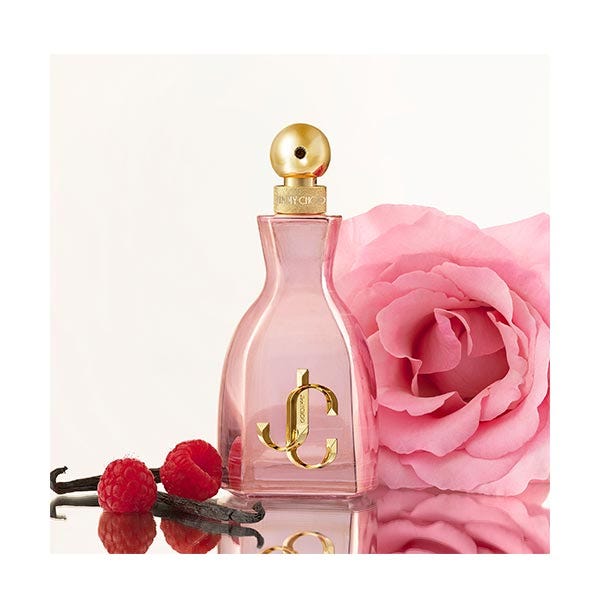 I Want Choo With Love es un Eau de Parfum floral afrutado ambarino, que celebra el amor, la amistad y la confianza en uno mismo. Esta fragancia aporta un enfoque moderno y luminoso de vainilla rosa a la gama «I Want Choo». Su viaje olfativo comienza con notas ligeras y refrescantes de frambuesa, azahar y esencia de mandarina, seguidas de vibrantes notas infusionadas de rosa, hibisco y fresia. Termina con una base cremosa de vainilla, sándalo y almizcle, creando un aroma sofisticado y poderoso característico del audaz ADN de Jimmy Choo.