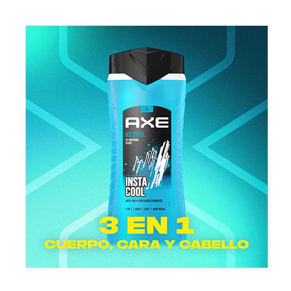 Ese tipo frío sería el jabón líquido Axe Ice Chill para hombres.Escucha, la cosa es que a veces se necesita una ráfaga de frescura instantánea para ponerse en marcha. Para darte un poco de confianza. Deshazte de las telarañas, ¿sabes? Podrías estar yendo a una cita, o viniendo a la ciudad, o simplemente yendo a trabajar.