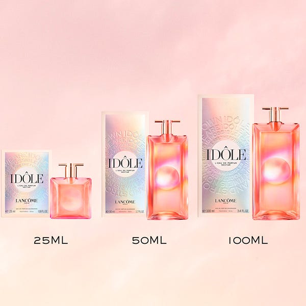 Poderoso, en su creación, el nuevo Idôle Eau de Parfum Nectar se viste de un tono melocotón ardiente y un halo holográfico, en el corazón, le confiere un lujoso resplandor para un impacto aún más intenso. Un auténtico objeto de deseo.